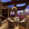本套装修为田园型装修,阳台地面采用的是地板装修,墙面采用墙纸进行装修,吊顶采用地板进行平顶吊顶,加以吊灯做装饰,阳台富有泥土气息的小藤条做成的藤椅以及藤桌,其造型完全可以随心所欲。轻巧大方,那些细密交织的藤条古朴、清爽。透过窗户,每当夜幕降临的时候,天空是泛着光泽的紫水晶,若影若现的云像是上帝呵出的热气,神秘轻盈的蓝天白云天气,心情感觉也很舒畅。营造了一个美轮美奂的空间,散发着无穷的魅力。