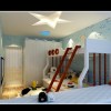 本套装修为田园型装修,卧室地面采用地板装修,局部采用的地毯进行装饰,墙面采用的墙纸进行装修,吊顶采用石膏板进行平顶吊顶,加以吊灯进行装饰,走进卧室,首先看到是靠在墙角的双层床,对于儿童来说,爬上爬下可以锻炼他的灵活度。还有效的节省了空间,床上摆放可爱的毛绒玩具,矮胖胖的,全身的毛又厚又光滑,樱桃似的鼻子,在那圆溜溜的白色脑袋上,显的特别漂亮,屋顶上星星图案和墙纸相互呼应,给人一种海洋的感觉,整个房间的设计温馨,并带有活泼的色彩,适用于儿童居住。 更多»推荐小区效果图