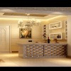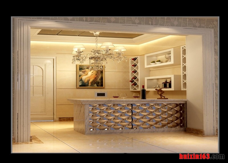 本套装修为欧美型装修,客厅地面采用大理石装修,墙面采用的墙纸进行装修,吊顶采用石膏板进行平顶吊顶,加以吊灯进行装饰,当走进餐厅,迎接是一番欧美的格调,会让人感叹于环境的宜人与精致。桌子是白色的搭配与六把座椅,相当的大气,酒柜上的红酒,顿时让人闻到酒香,香气迷人,餐厅里每一个角落都是经过精心布置的,让人感到舒适宜人,就仿佛进入了一个富丽堂皇的宫殿。