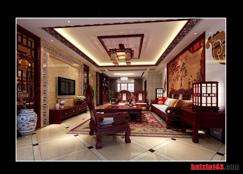 ![]() 明景小区中式古典型风格装修效果图-客厅