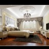 本套装修为欧美型装修,卧室地面采用地板装修,墙面采用的米黄色墙纸进行装修,吊顶采用石膏板进行平顶吊顶,加以水晶灯进行装饰,舒适的床和地毯等组合,实用又漂亮哟,电视柜不仅具有装饰点缀的作用,储物格,不让一丝空间得到浪费,装扮上一套这样的家居空间,每当阳光照射进来,把屋内照射的都很美。整体色调的安排以及舒适性都很合理,整个空间在明媚中蕴涵着沉静的气息。