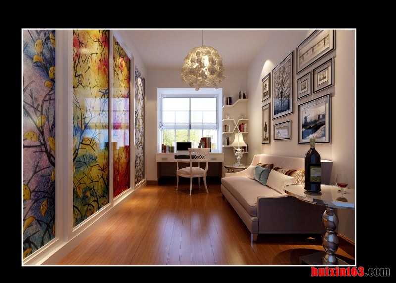 本套装修为欧美型装修,客厅地面采用大理石装修,局部采用的地毯进行装饰,墙面采用的墙纸进行装修,吊顶采用石膏板进行平顶吊顶,加以水晶灯做进行装饰,空间看起来金碧辉煌,隐约有一种皇室的感觉,电视采用的大理石作为电视背景墙,更将业主的品位体现得淋漓尽致。墙壁上照片墙,更能体现出业主的涵养,开放式的餐厅独处一角,加上奢华的水晶灯显得更加的大气,整体给人一种华美的感觉。