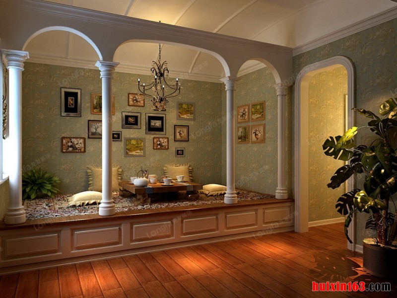 本套装修为欧美型装修,茶房地面采用地板装修,墙面采用墙纸进行装修,吊顶采用石膏板进行平顶吊顶,加以吊灯做装饰,走进茶房,给人一种一目了然的感觉。茶房是以拱形的搭配罗马组构建而成,装饰线简洁明快,流露出古老的文明气息,茶桌是四四方方,茶桌上放置了一套白色的茶壶,面目一新,胎釉像雪和银子一样洁白。整体给人一种错落有致,雍容华贵的感觉。 更多»推荐小区效果图